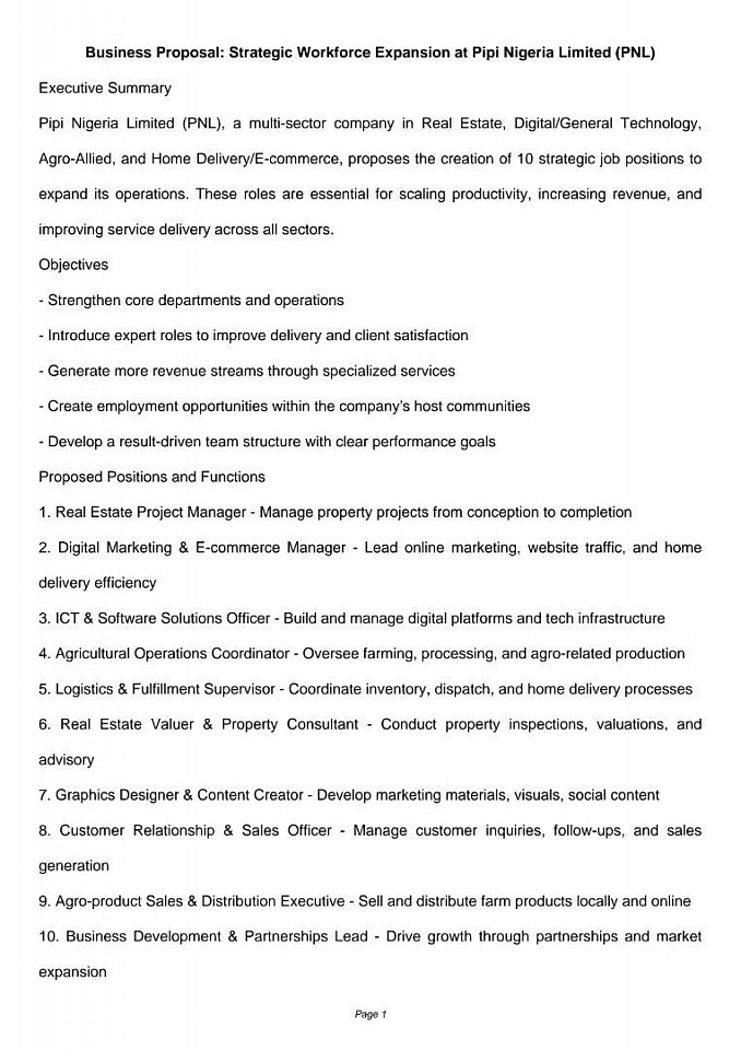Pipi Nigeria Limited (PNL) is a prominent leader in Real Estate, Digital & General Technology Services, Agro-Allied Services, and Home Delivery/E-commerce. We are currently expanding our team and invite qualified professionals to join us in advancing our commitment to innovation and excellence.